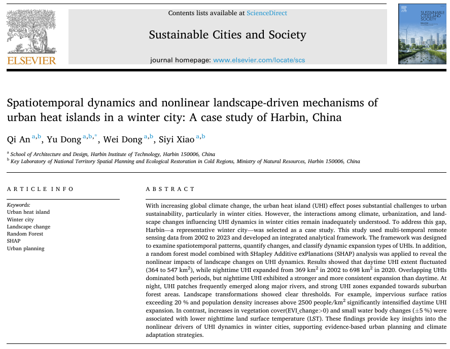2️⃣ 《寒冷城市城市热岛时空动态及非线性景观驱动机制:以中国哈尔滨为例》