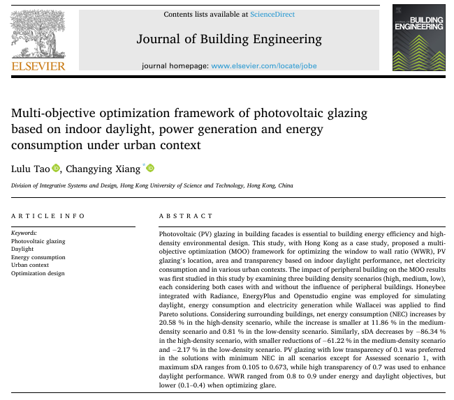 1️⃣ 《基于城市背景下室内日照、发电和能耗的光伏玻璃多目标优化框架》