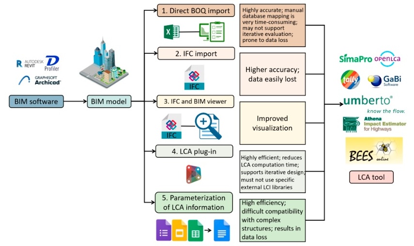 在建筑行业的高能耗、高碳排背景下,详细而精确的全生命周期评估(LCA)至关重要。本综述研究考察了建筑信息模型(BIM)软件在简化LCA流程、提升效率与准确性方面的作用。尽管BIM-LCA集成具有巨大潜力,但软件互操作性与兼容性等挑战依然存在,目前尚无统一标准用于选择BIM集成的LCA软件。此外,本研究探讨了各类BIM软件、LCA工具及能耗分析工具的能力与局限,并呈现了BIM-LCA集成案例的特征。研究批判性地讨论了BIM-LCA集成方法与数据交换技术,包括工程量清单导入、工业基础类(IFC)导入、BIM查看器应用、通过BIM插件直接进行LCA计算,以及LCA插件计算等方式。最后,研究对未来发展方向进行了展望,旨在指导开发与BIM软件更好集成的先进LCA工具,以应对可持续建造实践中的关键需求。