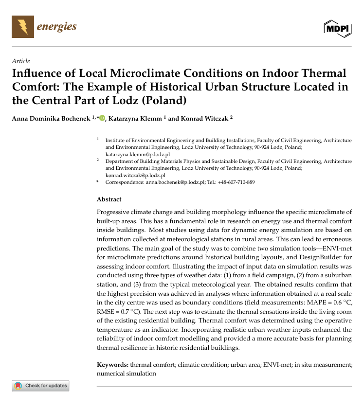 1️⃣ 《局部微气候条件对室内热舒适的影响——以波兰罗兹市中心历史城区为例》